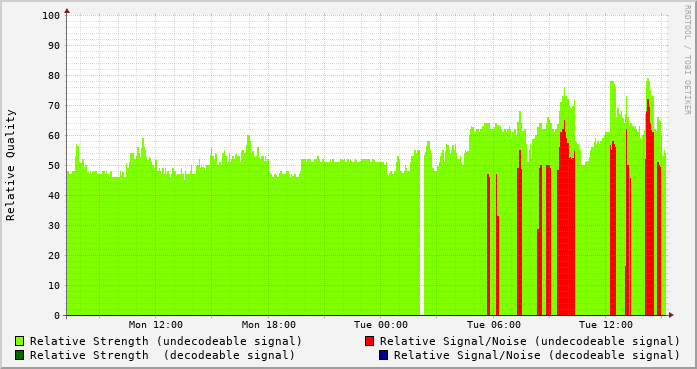 Signal graphs for KFME at Garland, NE-4K-HD7698P@87ft/Ch6 tuner0
