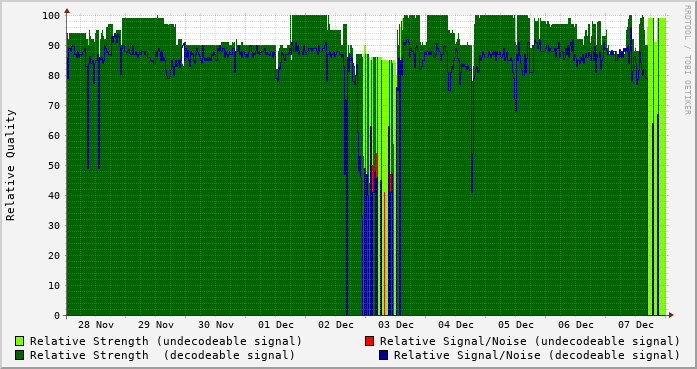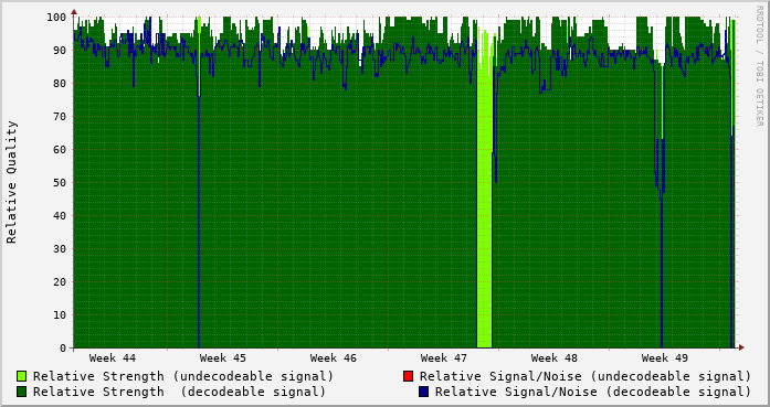 Signal graphs for KOLN at Garland, NE-4K-HD7698P@87ft/Ch6 tuner0