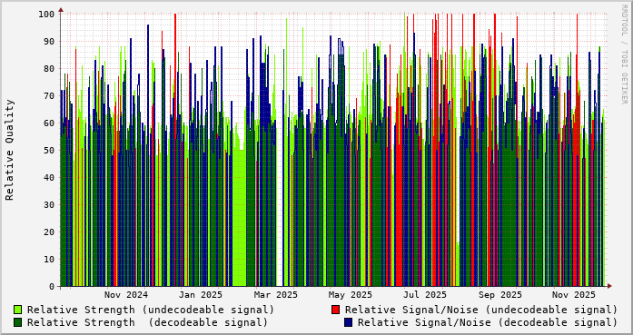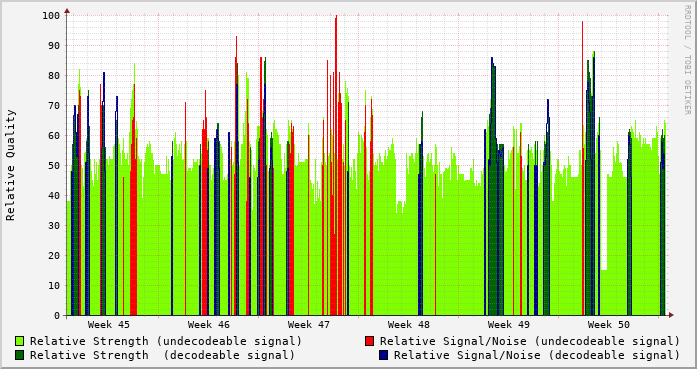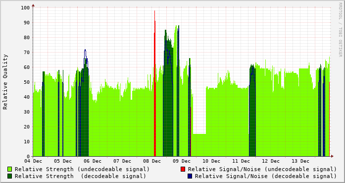 Signal graphs for KWBE-LD at Garland, NE-4K-HD7698P@87ft/Ch6 tuner0