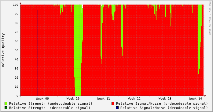 Signal graphs for KZNO-LD at Beach Park, IL-ChiwaukeeOTA 2 Televes 148383 combined with an Avant X
