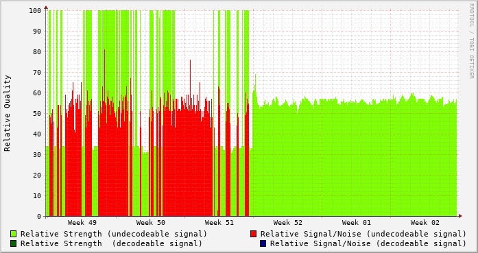 Signal graphs for WBRA-TV at Abilene, VA-4K Terk HDTVi, high shelf on second floor